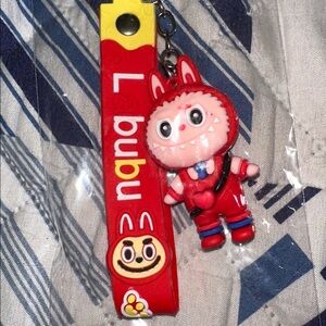 This poor little guy needs a Happy Meal. He looks Hangry. Red Labubu keychain/bag charm
