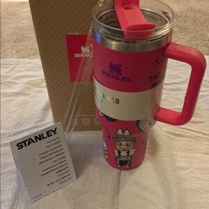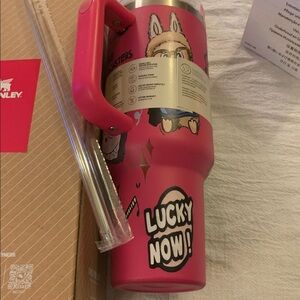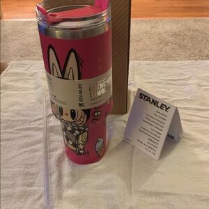 Labubu Stanley Pink tumbler 40 Ounces NEW Clear top reusable Straw. Ideal for maintaining drink temperature. Drink stays cold for about 11 hours. 2 Days iced and 7 hours hot. Flowstate 3-Position no leak lid. BPA free. Dish washer safe. Car cup holder compatible. Adorable Labubu Graphics. Lifetime from factory guarantee! Fast shipping from a pet free smoke free home.