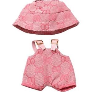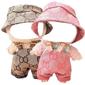 Adorable toy clothing set featuring stylish outfit and matching hat for Labubu doll. Perfect for designer wear . Available in pink. Includes 1 outfit and matching hat