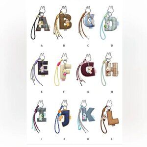 These danglers have a letter, small Labubu, tassel and rabbit clip.