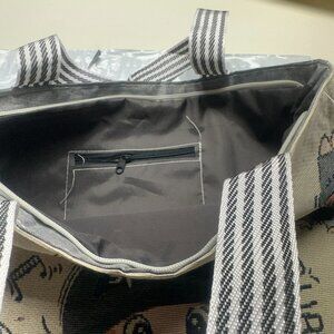 Tote is 17 wide by 14 and 5/8th very large. plus your also getting 1 sticker pack with 2 sheets and 2 hair clips . all brand-new Tote was opened for picture only. All items will be inside the tote.