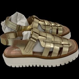 Stylish gold sandals with a chunky white sole. Perfect for casual outings. Worn a few times, practically new! Box included.