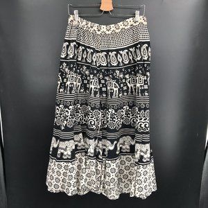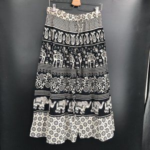 Labwanti wide leg boho festival indian goucho pant hippy black white elephant OS