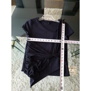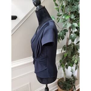 Labwork Faux Wrap Ruched Women's S-P Blue Polyester Short Sleeves Tie Waist Top