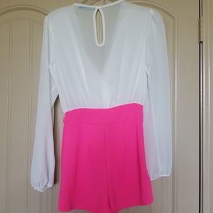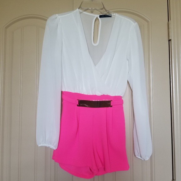 Hot pink romper with sheer white long sleeve too and gold belt plate (Never Worn)