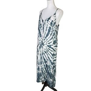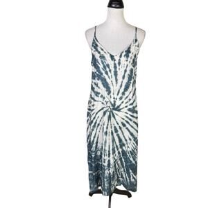 Lacausa Blue Tie Dye Sleeveless Spaghetti Strap Midi Lightweight Slip Dress