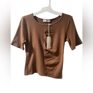 LACAUSA Ruched Tee In Textured Brown. NWT, Size XS, 100% Organic Cotton. Fitted Through The Body With A Ruching At Center Front Seam. Bust 13.5’, Length 19’
