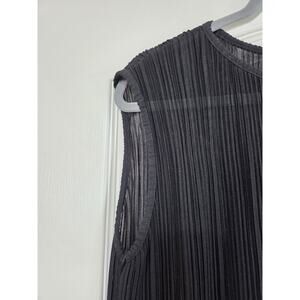 Lacausa Sheer Black Mini Pleated Sleeveless Shift Midi Dress, Women's Small