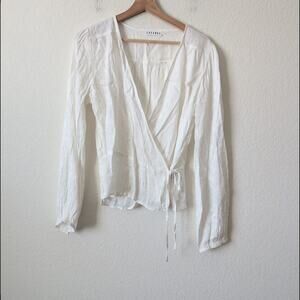 Lacausa Women's White Wrap Top - Size L Embroidery Boho Relaxed Anthropologie