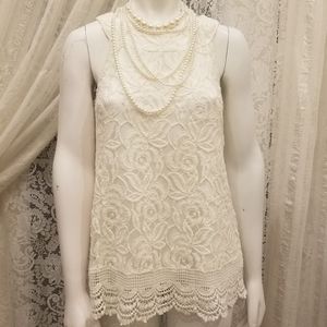 Lauren Michelle Lace Overlay Sleeveless Blouse