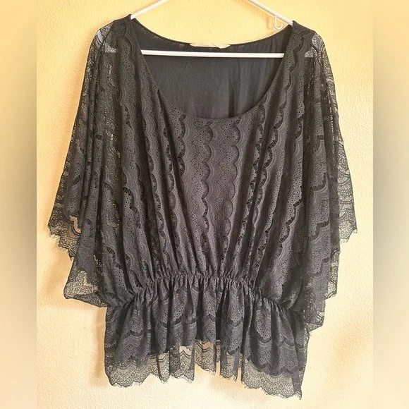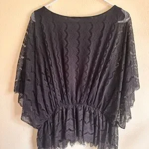 Black lace blouse gathered at waist. Beautiful lace design. Like new condition never worn.