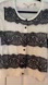 • Design Details: Bold, graphic black lace bands across the front contrast beautifully with the ivory knit, giving it an elegant, vintage-inspired feel.