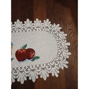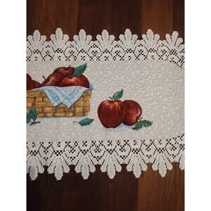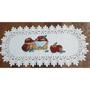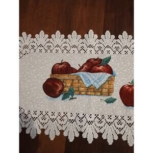 Lace Apple Basket Table Runner Centerpiece Fall White Red Harvest 14 x 30 Stiff
