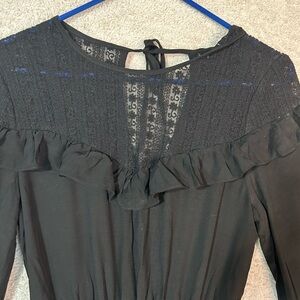 Lace Babydoll Mini Dress Long sleeve Dark Romantic Goth Black Bow Y2K 90, Medium