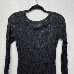 Women's pullover lace black top. Scoop neck. Long sleeves. Stretch. In good used condition. No stains, tears or holes.
