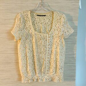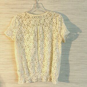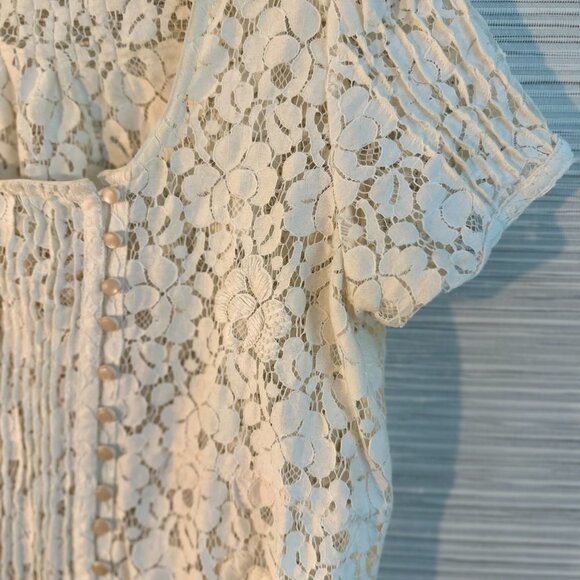 Lace Blouse – Cream, Scoop Neck, Pintucks, Buttons - Akiabara Argentine