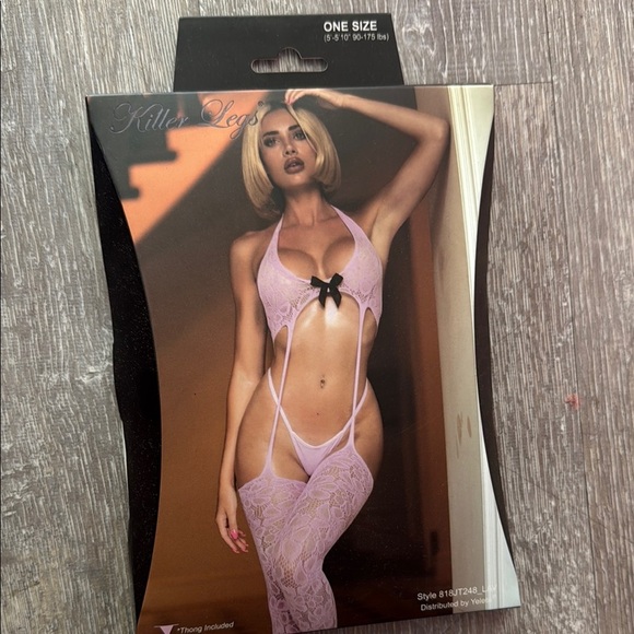 Embrace elegance with the pink lace bodystocking. This intimate piece features a delicate lace design, perfect for adding a touch of allure to your wardrobe.