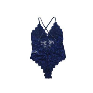 Lace Bodysuit Lingerie with Cross Back Straps in Navy Blue Size M.