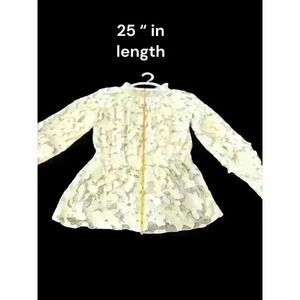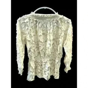 Lace Boho Ivory Floral Women’s Long Sleeve Top Ruffle Neckline Elasticized Waist