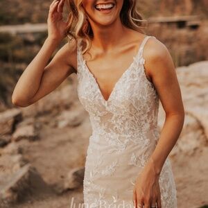 Size 8 (true to size) lace wedding gown. New, tried on once. From June Bridals.