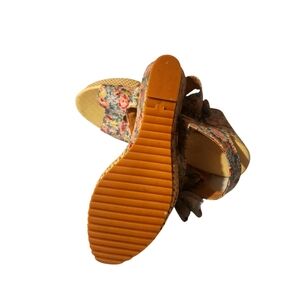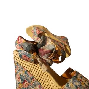 Lace Bow Knot Fashion Flower Print Ankle Tie Open Toe Wedge Heels