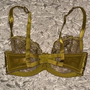 UNLINED BRA: Balconette underwire bra with slight plunge and hook & eye. Wide adjustable straps for extra support. Worn once and in excellent condition