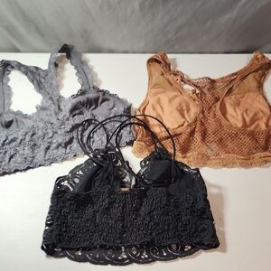 Lace Bralette Bundle in Gray, Black And Brown In Size Med