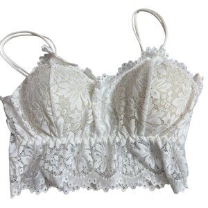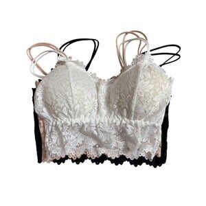Lace Bralette Set Of 3 White Peach & Black Colors Floral Design Women One Size