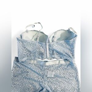 Elegant lace bralette and boyshort set in a soft light blue. Perfect for comfort and style.