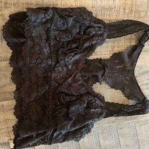 Black lace bralette is new without tags. Size L. T-style racer back. Soft and comfy.