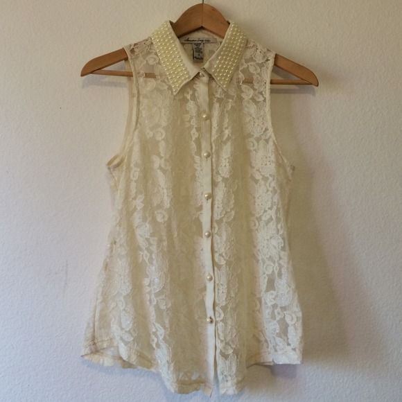 Cute lace button up with beads on the collar. No missing beads. Never worn, 10/10 condition REASONABLE OFFERS ACCEPTED