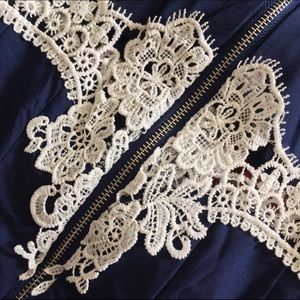 Adorable romper with caged back • silver zipper closure down back • beautiful see through lace detailing • tag says L but fits like a S • Brand new, never worn • I bought it for myself, but I'm short so it was too long in the back for my frame. Recommended for 5'5 and above • Offers Considered