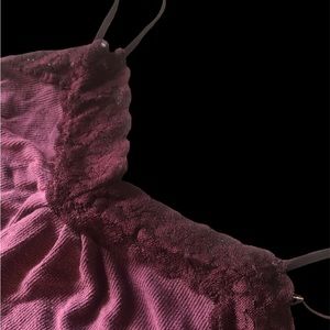 Lace top ribbed tank. Stretchy adjustable spaghetti straps. Maroon and very soft