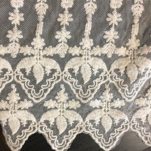 Very feminine, detailed cardigan. I wore this for my wedding reception and haven’t put it on much since then. Expect tons of compliments! Very pretty embroidered details. Size XS, could fit a small (I’m like a small/medium and it fits super well but is slightly snug).