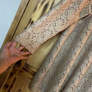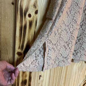 Gorgeous sheer floral lace cardigan, single button closure with an extra underneath. Two side vents. Polyester nylon spandex blend
