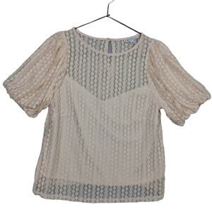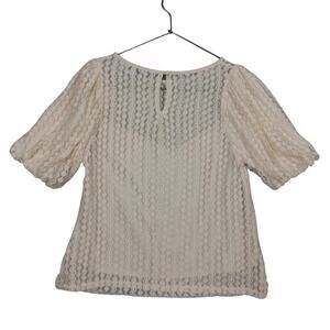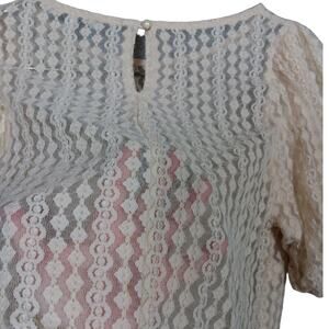 Lace Cottagecore Blouse Haute Monde Size Large Beige See Thru Back
