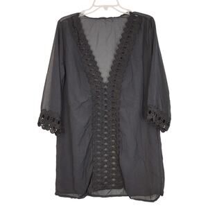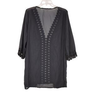 Lace Cover-Up Mini Beach Dress Bikini Sun Shirt Swimsuit Loose Fit Black OS