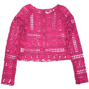 Balletcore Pinkcore Crochet Unique Vibrant Banjul Lace Crop Top Womens Lg Pink Coquette Whimsigoth Boho