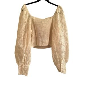 Stunning well made lace crop with puff sleeves and elastic back. New with tags!!