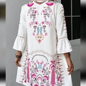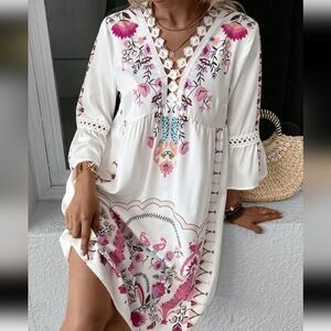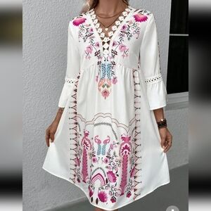 Lace Detail Printed Three-Quarter Sleeve Dress