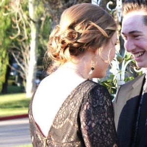 Beautiful lace dress I wore to a formal a few years ago. Zips up in the back to a beautiful v-shaped open back. Slip underneath is tan.
