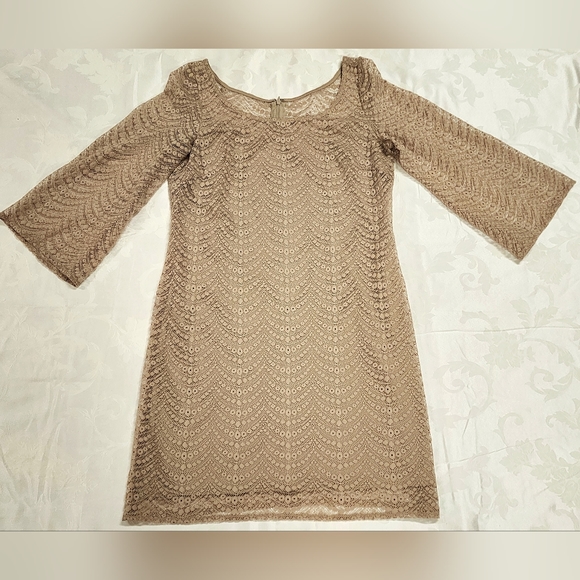 Simple but Beautiful Lace Dress. Zipper closure. Size 6 and Beige in color. Used but great condition.