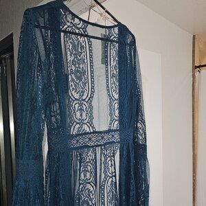 Deep teal/blue lace Duster. NWT. Perfect for a festival!