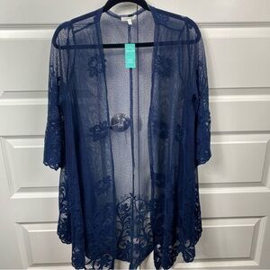 Maurices Lace Duster Kimono Blue Oversized Small Floral Long See Through