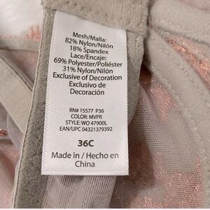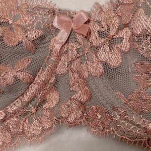 Secret Treasures Intimates Lace Embroidered Bra. Underwire. Gray with pink floral embroidered lace. Size 36C. New with tag.