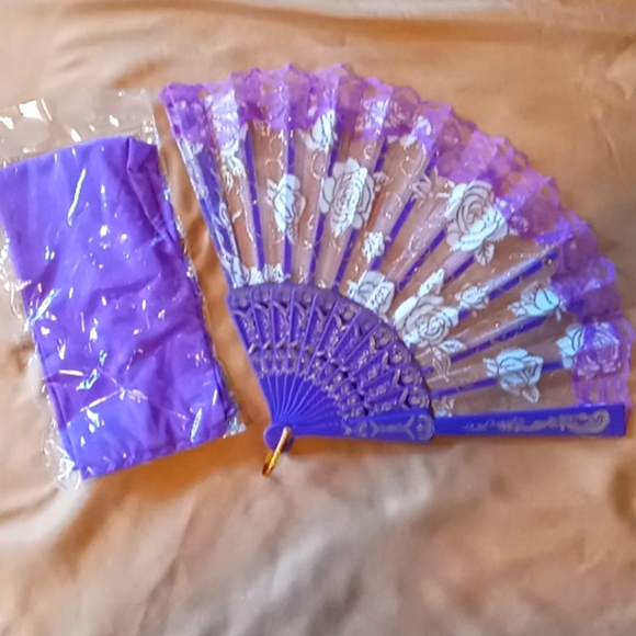 Beautiful Purple Lace Hand Fan with 15' Sleeves.