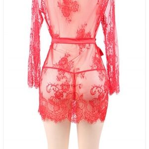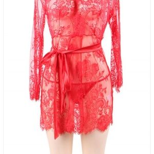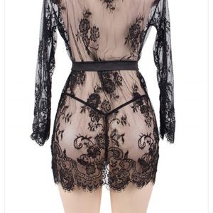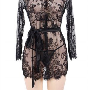 Beautiful lace robe with floral detail. Very sexy!!! Comes with matching thong.💋💋 make me an offer