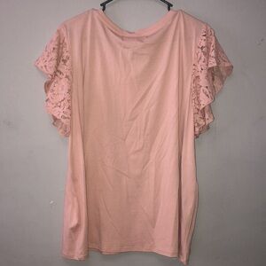 Catherine Maladrino Lace Flutter Sleeve T-shirt In Blush Size 2X New with Tags