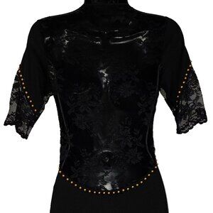 Elegante! women's black Lace dress, embellished with hand placed gold brass Studs, Super sexy!