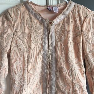Very pretty peach and tan lace jacket.